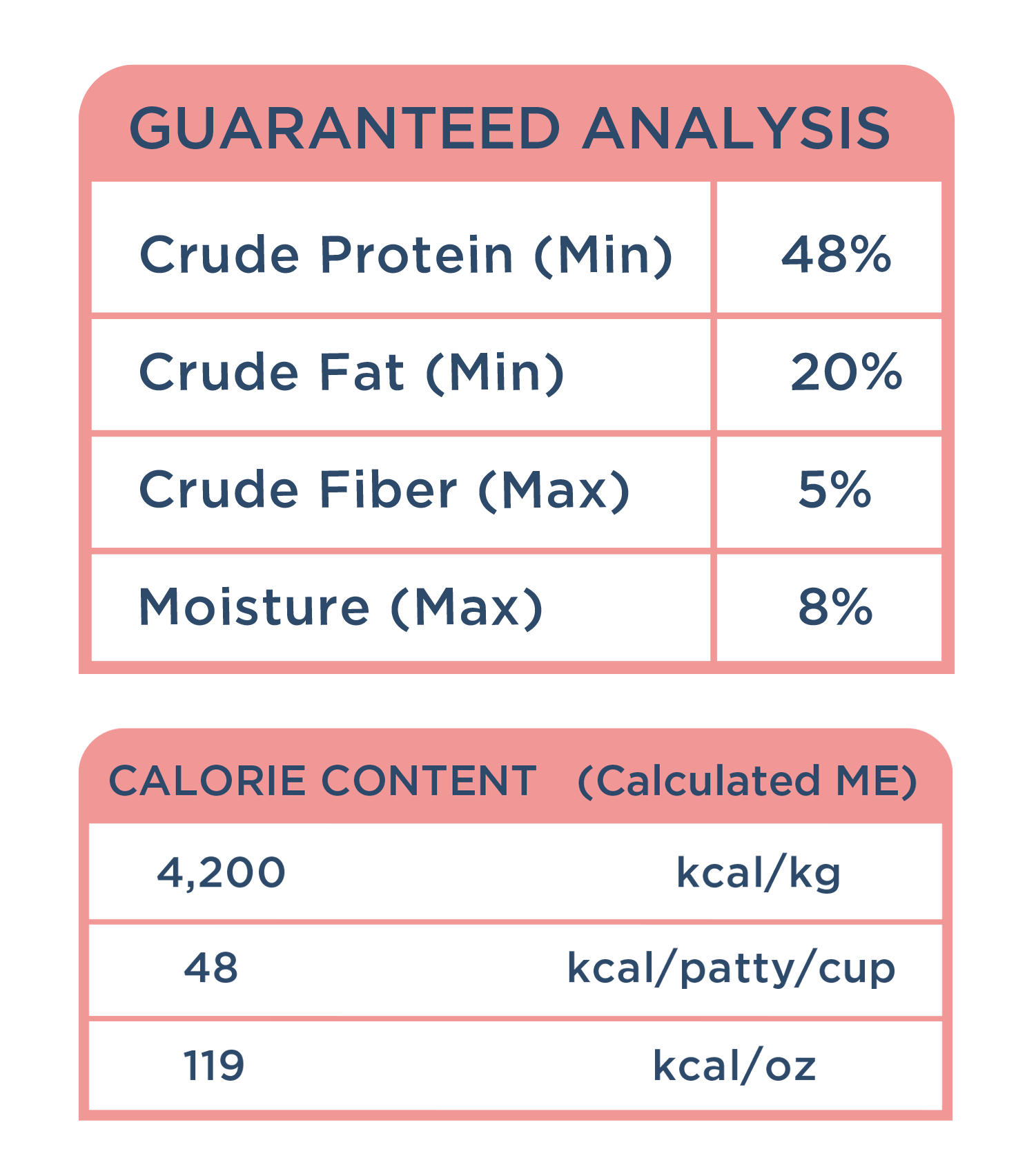 Chicken, Turkey Hearts, Turkey Livers, Sweet Potatoes, Squash, Kale, Parsley, Cherries, Whole Eggs, Coconut Oil, Dried Yeast, Sunflower Seeds, Pumpkin Seeds, Dehydrated alfalfa, Quinoa Seeds, Kelp, Sesame Seeds, Herring Oil, Chia Seeds, Cinnamon, Broccoli, Oranges, Cranberries, Pumpkin, Spinach, Beets, Strawberries, Blueberries, Mixed Tocopherols (as a preservative).